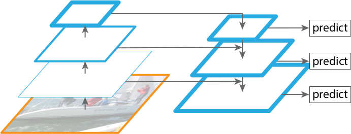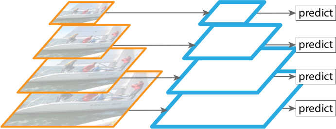 Another solution would be to simply use multiple feature maps generated by a ConvNet for prediction ( Figure 5 ), and each feature map would be used to detect objects of different scales. This is an approach adopted by some detectors like SSD. However, although the approach requires little extra cost in computation, it is still sub-optimal since the lower feature maps cannot sufficiently obtain semantic features from the higher ones.
